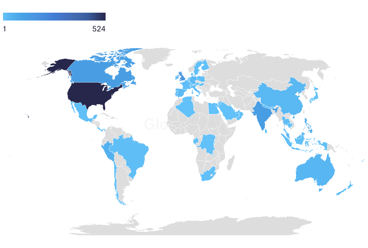 Geographic analysis of cybersecurity-related hiring in the global travel and tourism industry, Q2 2024 (total new job postings)