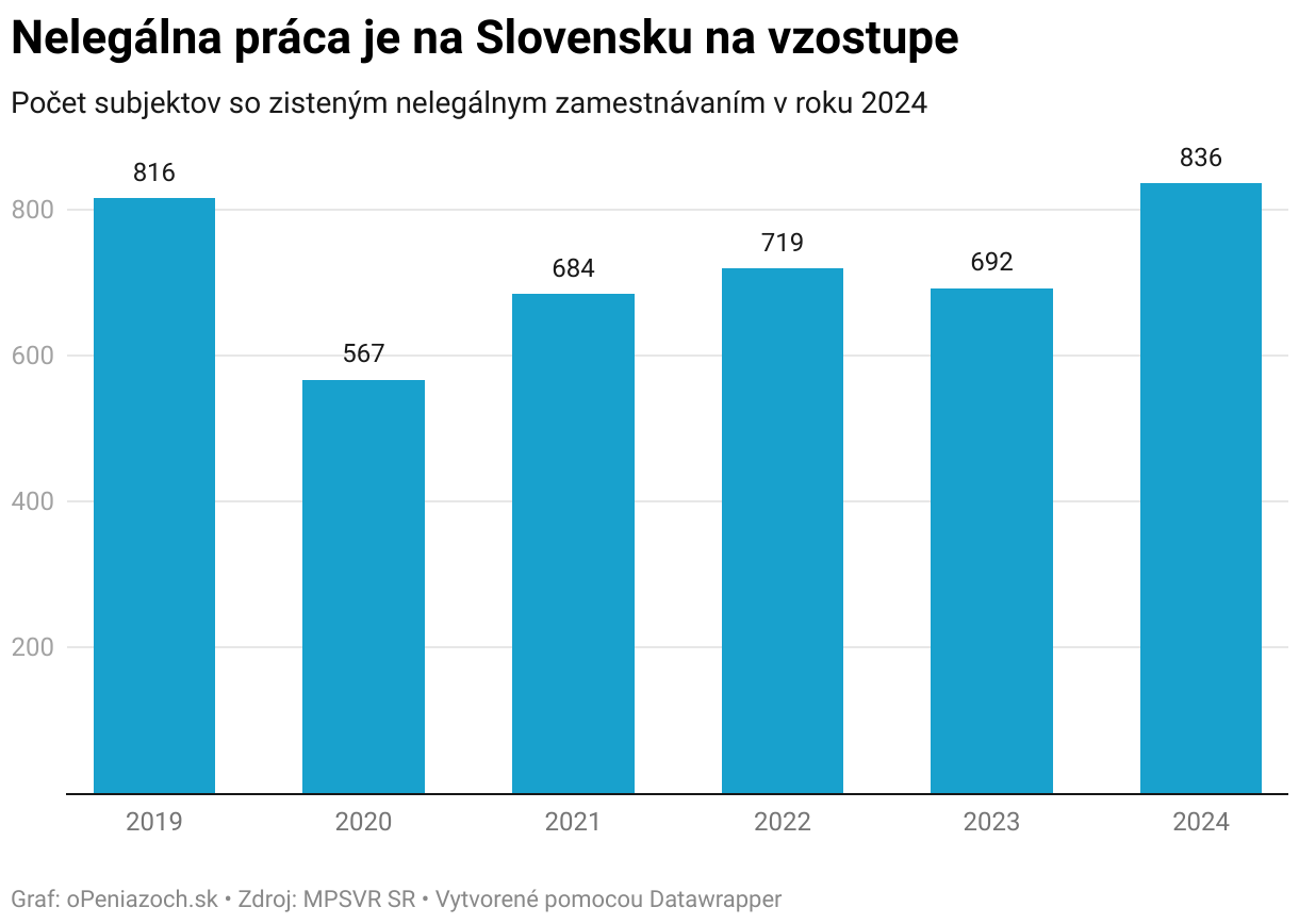 Počet subjektov so zisteným nelegálnym zamestnávaním v roku 2024