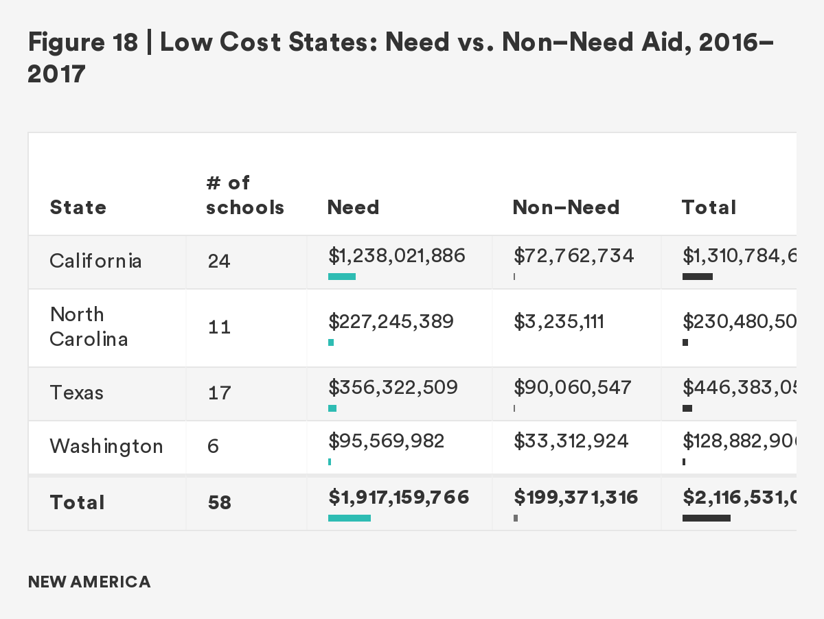 Figure 18 | Low Cost States: Need vs. Non–Need Aid, 2016–2017