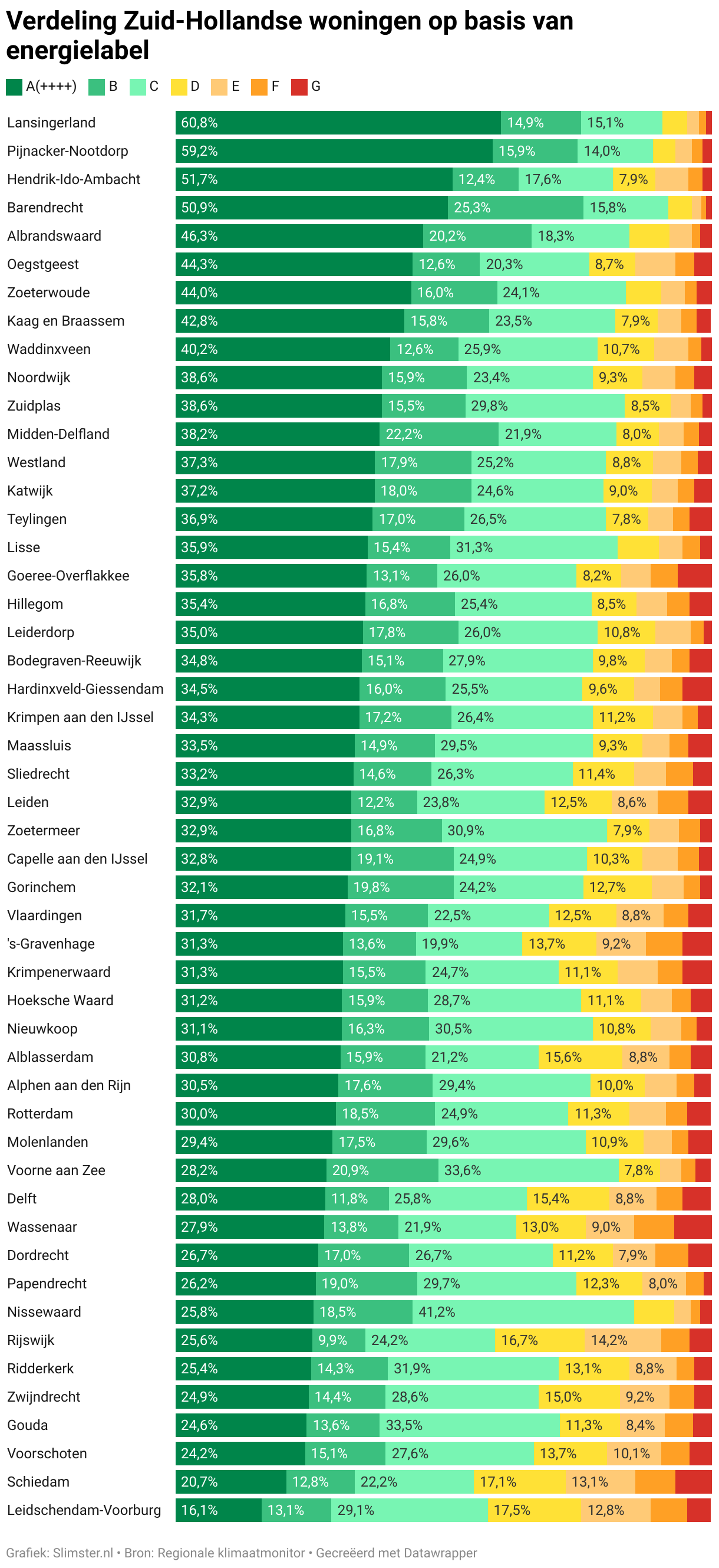 Verdeling Zuid-Hollandse woningen op basis van energielabel