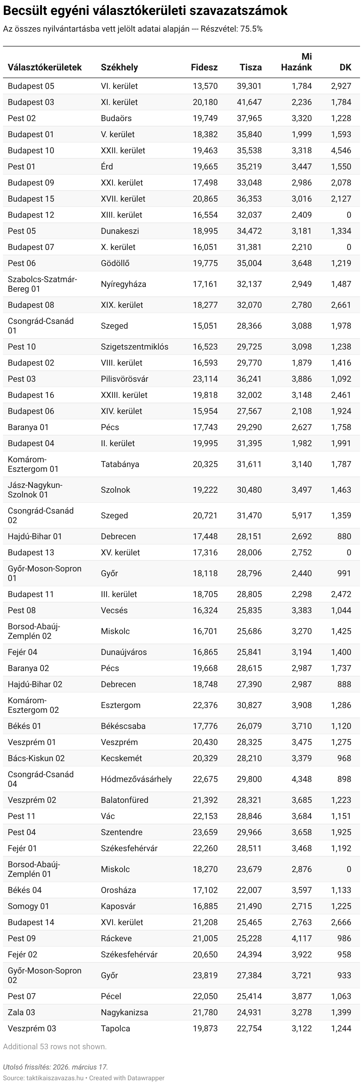 Az összes nyilvántartásba vett jelölt adatai alapján --- Részvétel: 75.5%