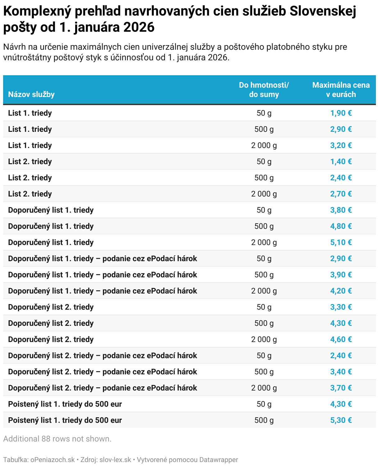 Návrh na určenie maximálnych cien univerzálnej služby a poštového platobného styku pre vnútroštátny poštový styk s účinnosťou od 1. januára 2026.