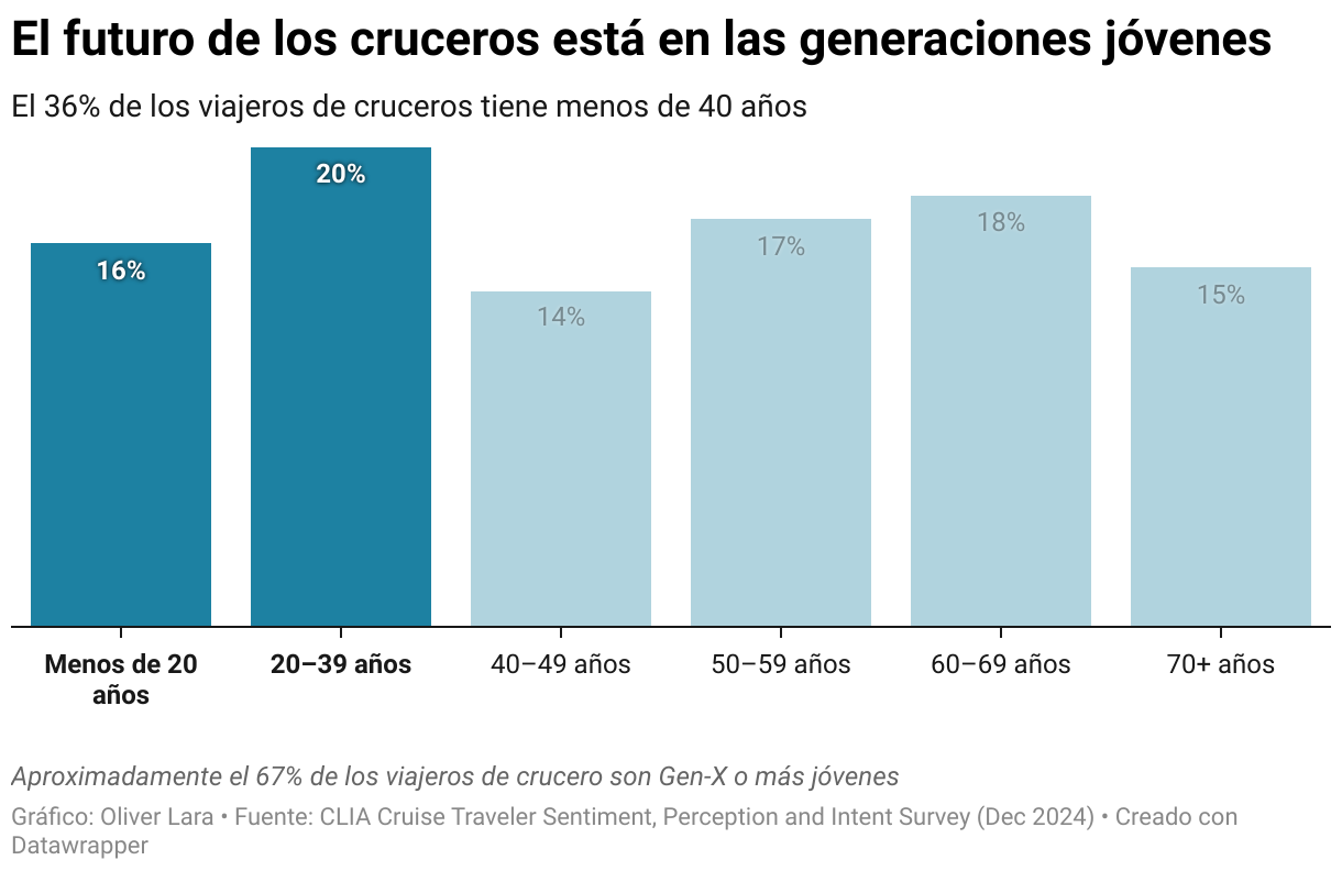 El 36% de los viajeros de cruceros tiene menos de 40 años