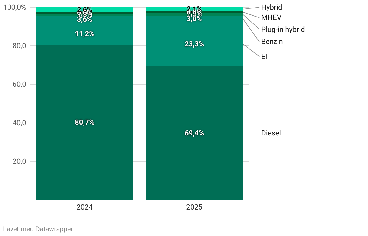Varebiler, fordelt på drivmiddel
