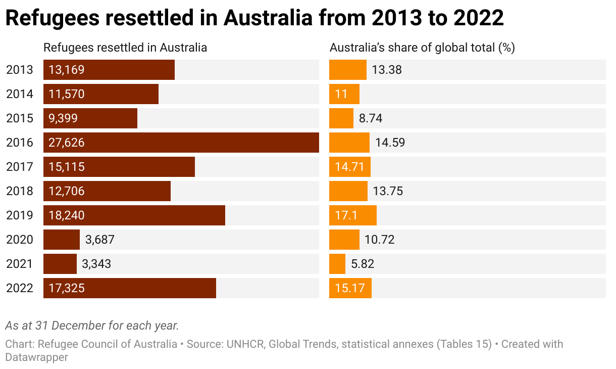 Refugees resettled in Australia from 2013 to 2022