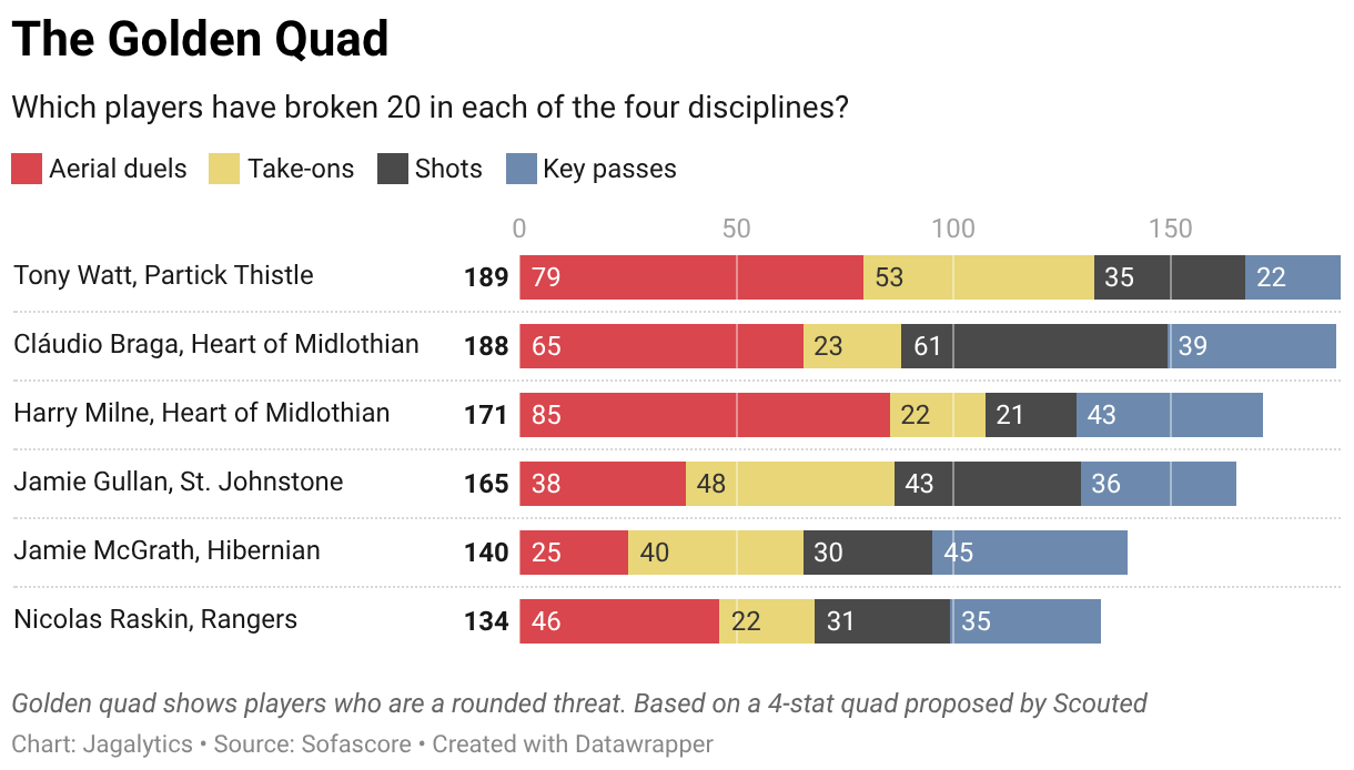 Which players have broken 20 in each of the four disciplines?