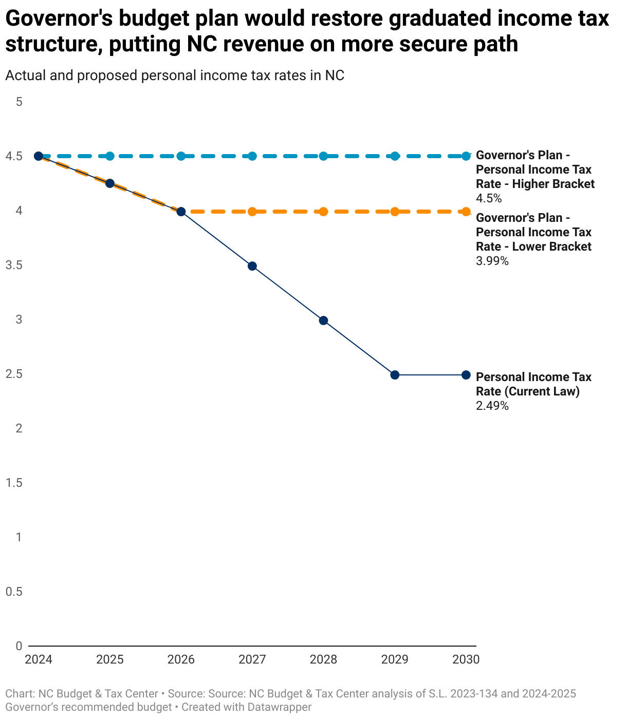 Actual and proposed personal income tax rates in NC