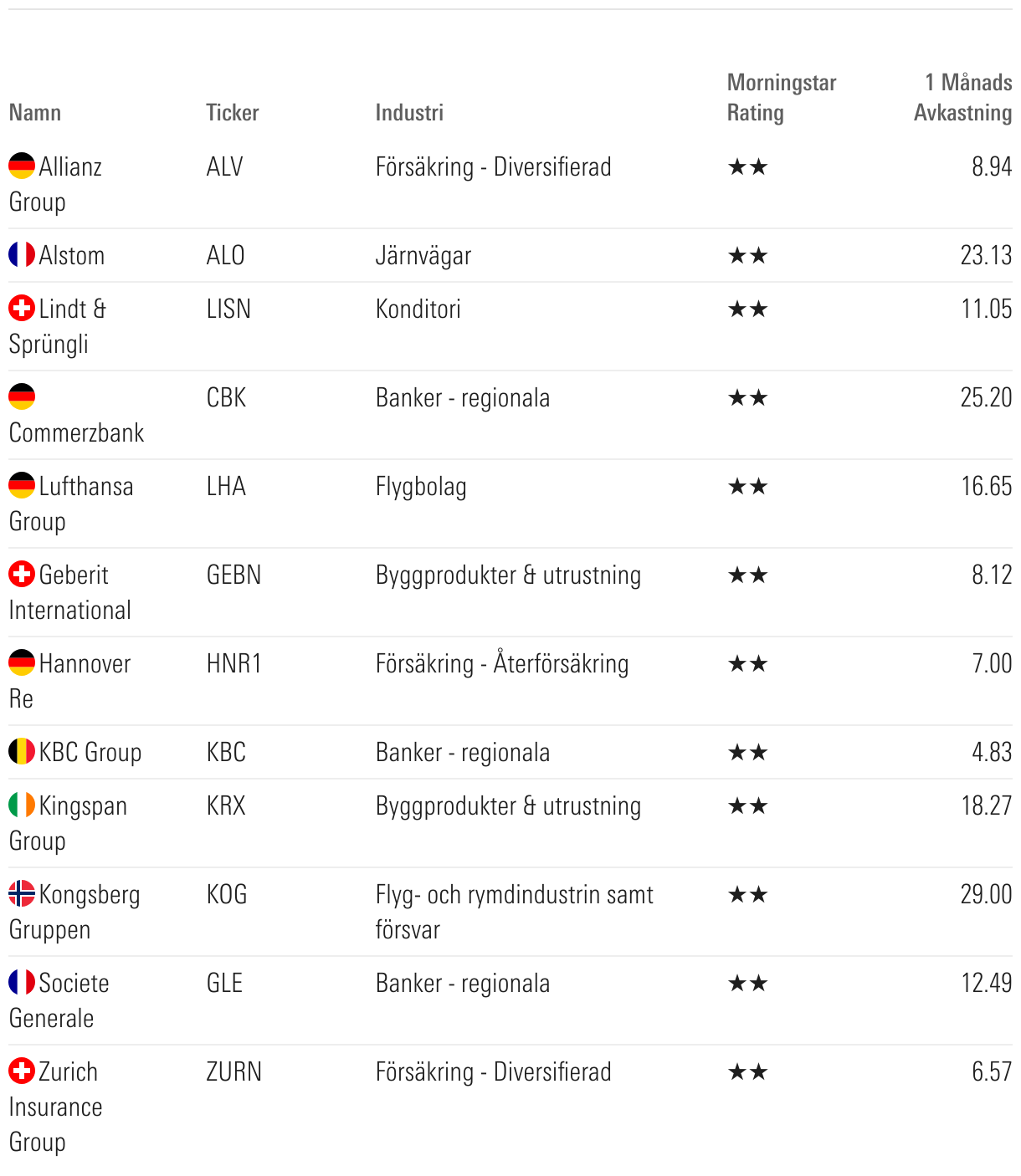 Nya 2-stjärniga aktier