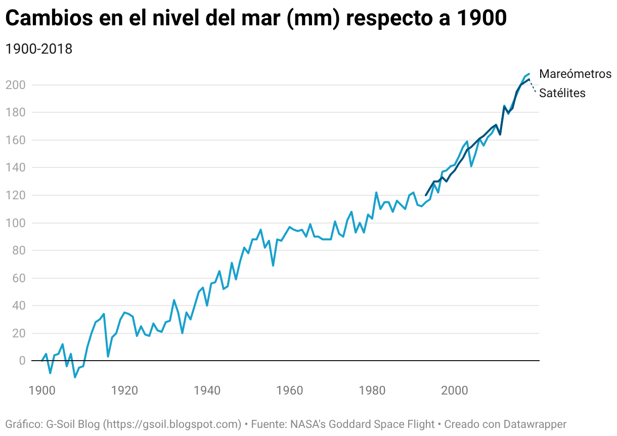 Cambios en el nivel del mar (mm) respecto a 1900