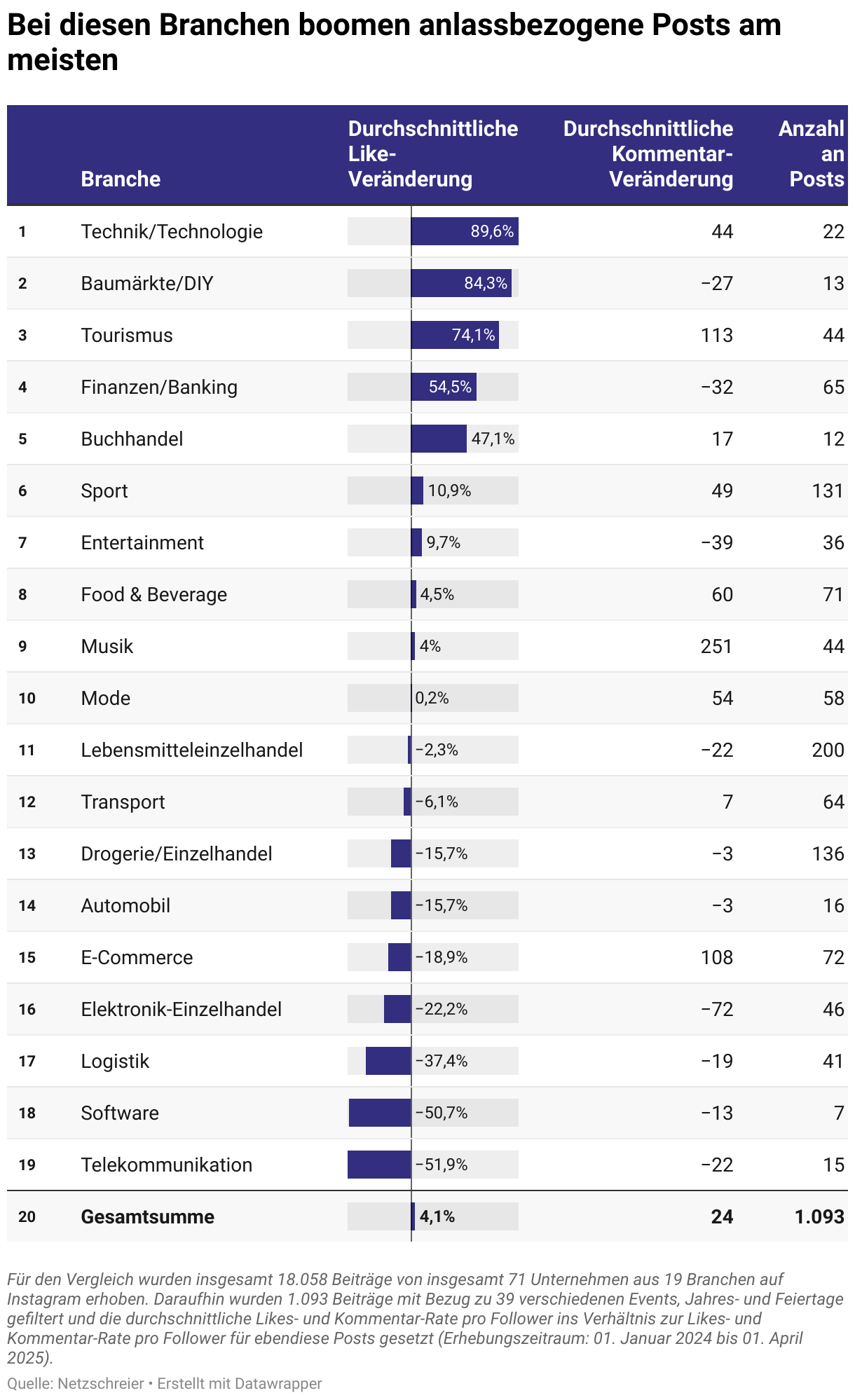 Bei diesen Branchen boomen anlassbezogene Posts am meisten
