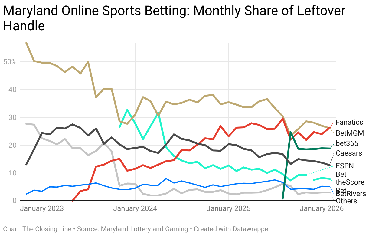 Maryland Online Sports Betting: Monthly Share of Leftover Handle