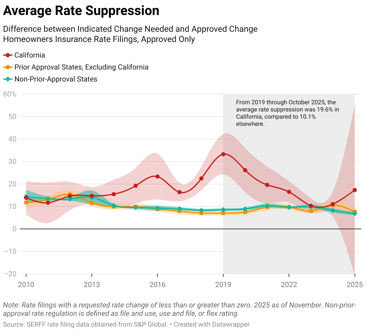 Difference between Indicated Change Needed and Approved Change Homeowners Insurance Rate Filings, Approved Only