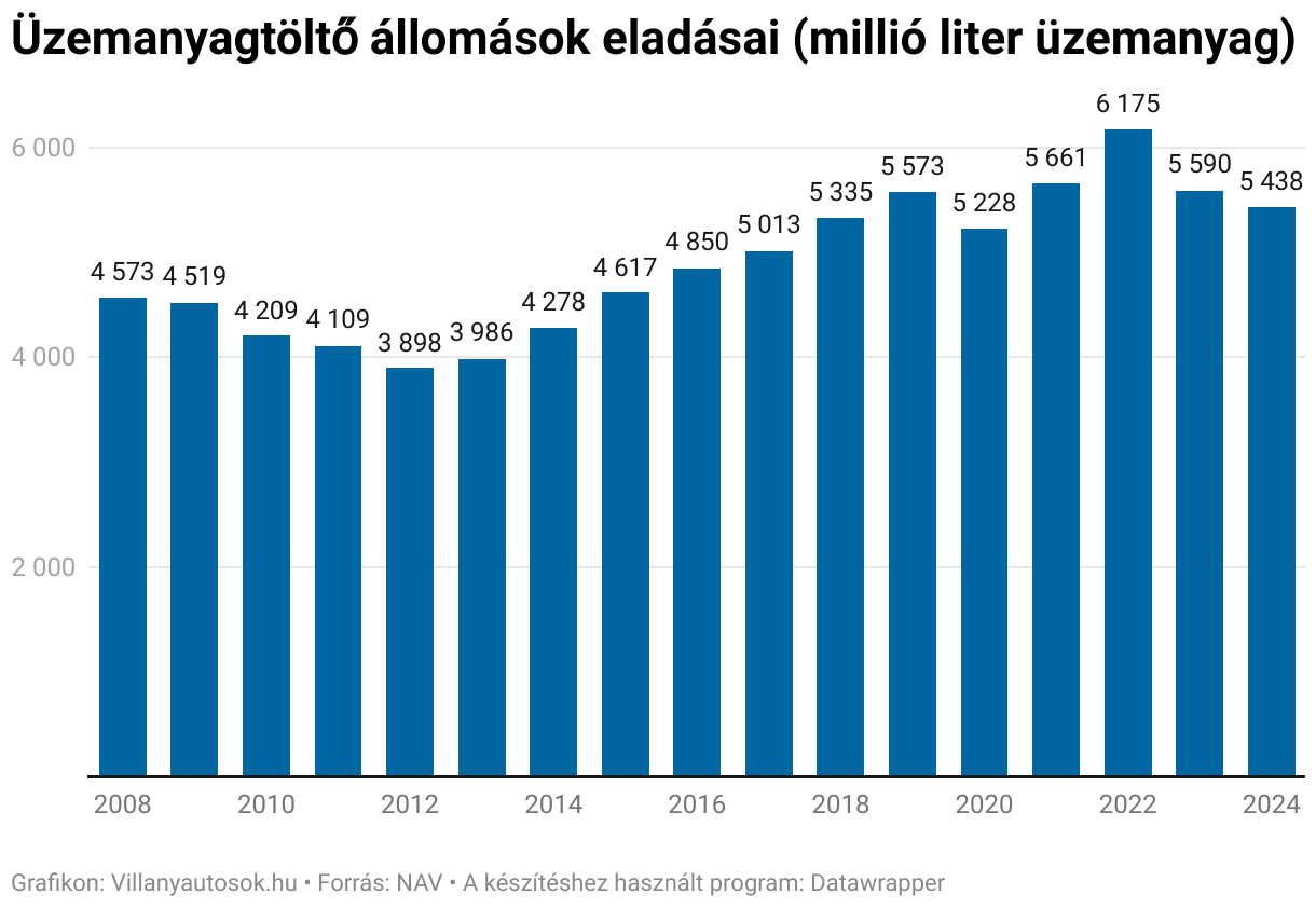 Üzemanyagtöltő állomások eladásai (millió liter üzemanyag)