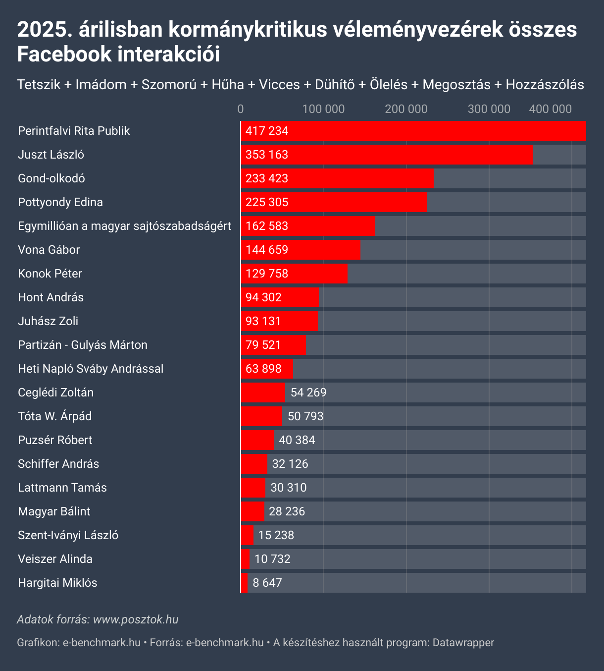2025. árilisban kormánykritikus véleményvezérek összes Facebook interakciói