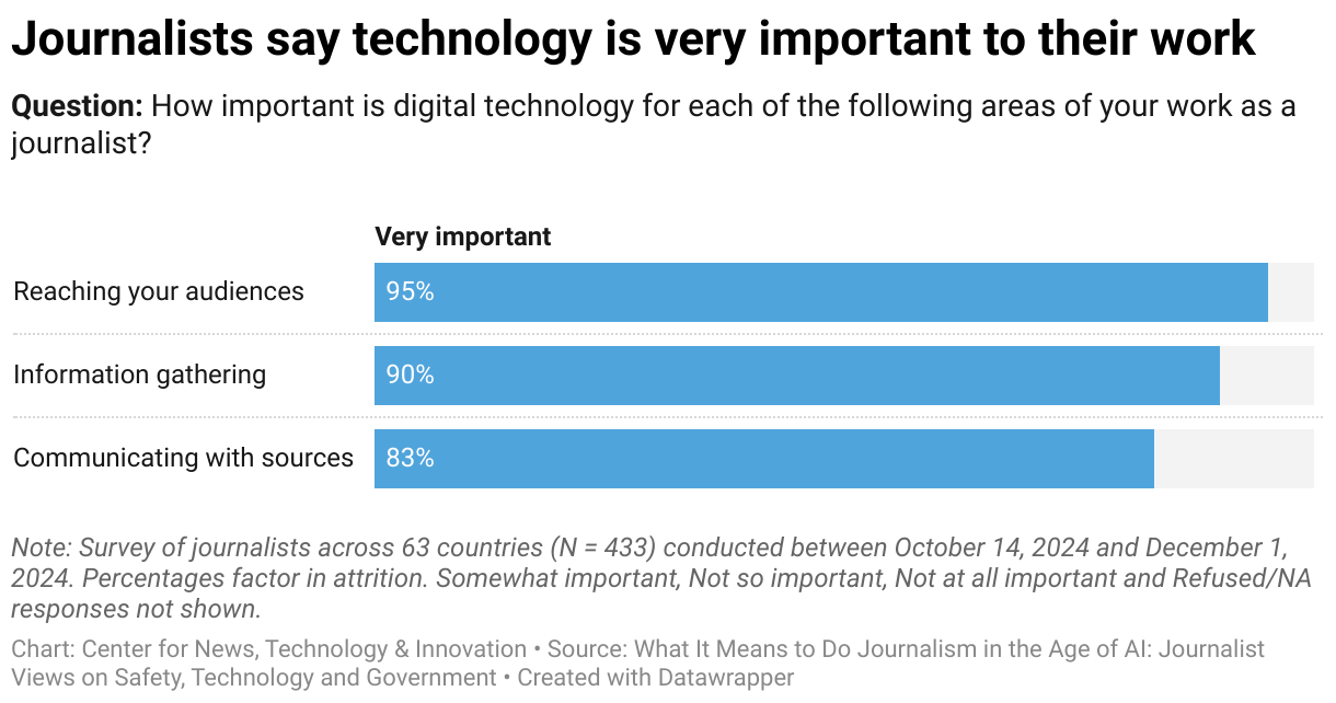 Question: How important is digital technology for each of the following areas of your work as a journalist?
