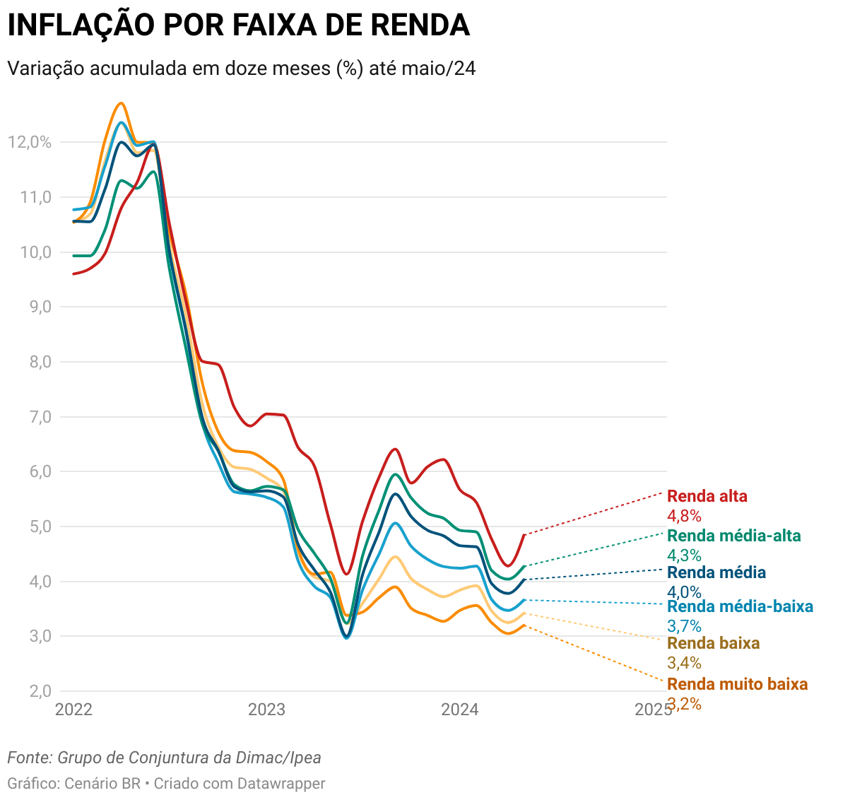 Variação acumulada em doze meses (%) até maio/24
