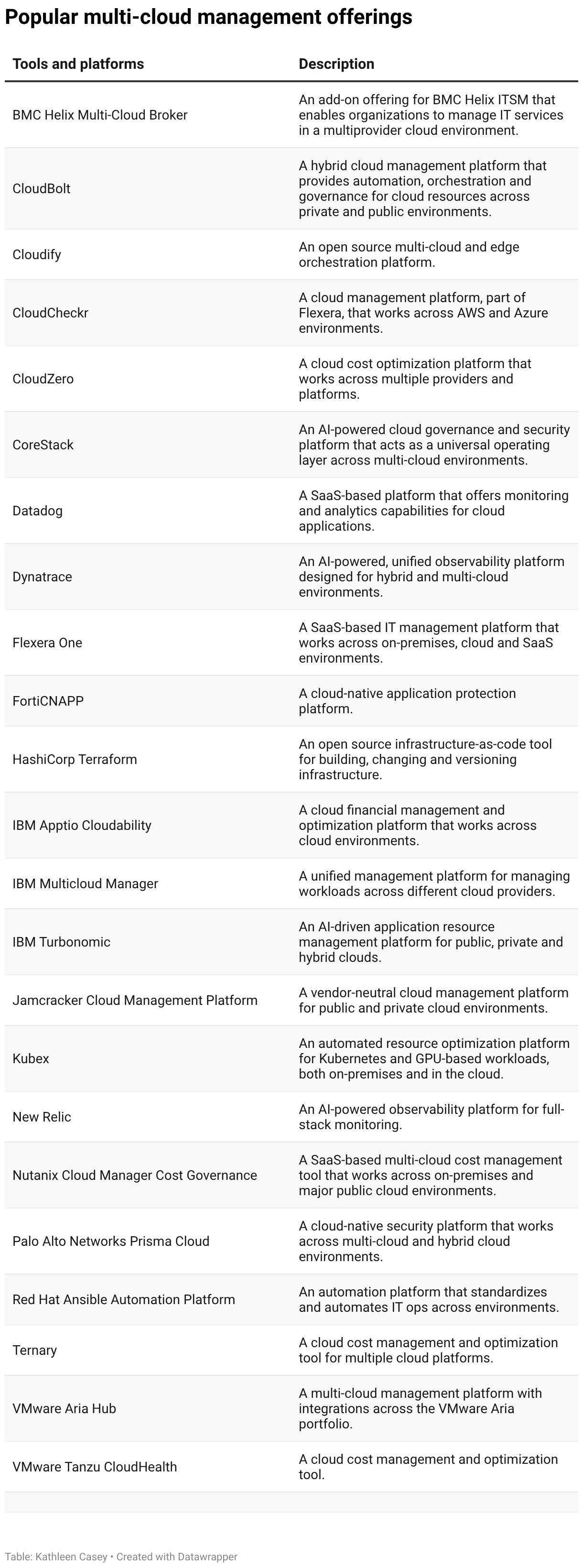 Popular multi-cloud management offerings