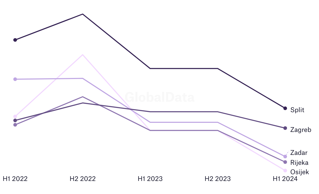 Top cities in Croatia: price trend analysis in the International cuisine
