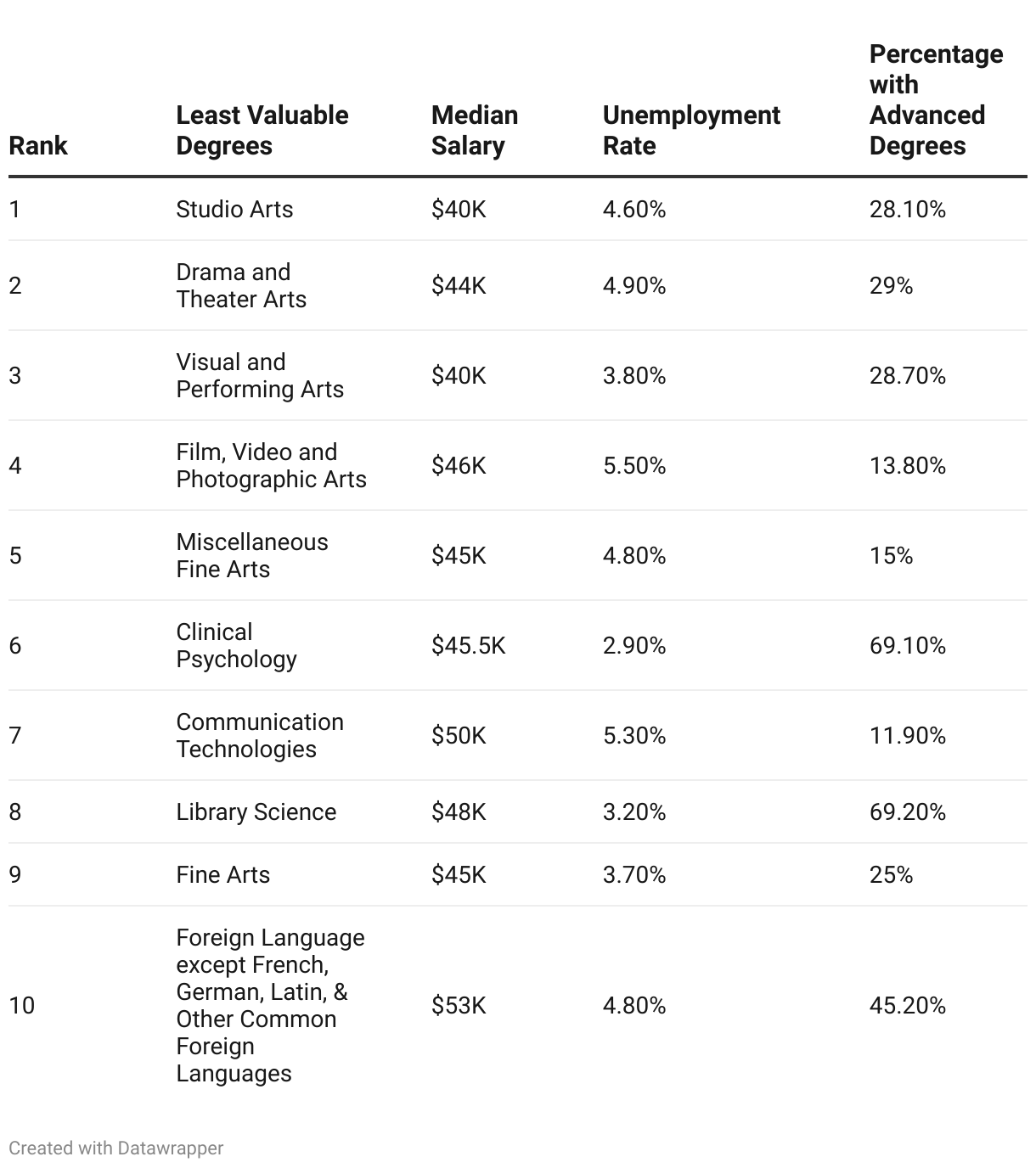2024 Least Valuable College Majors
