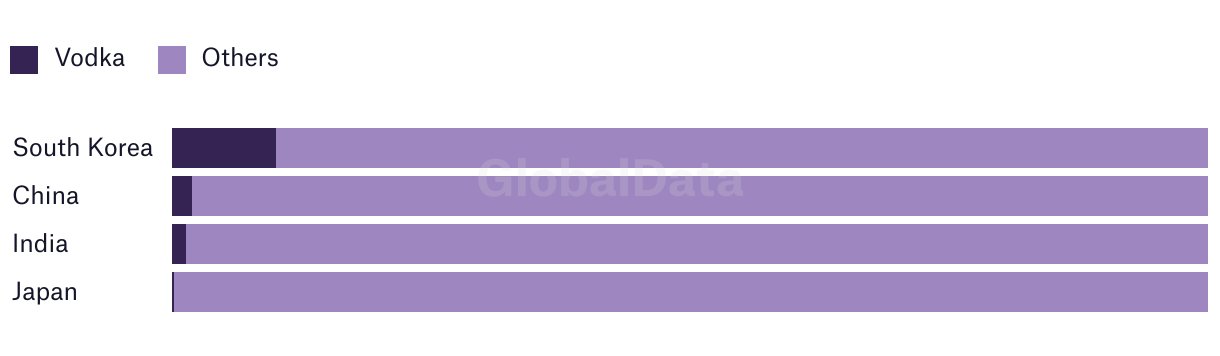 Market share of vodka vs other spirits in the top Asian markets (million litres) - 2022