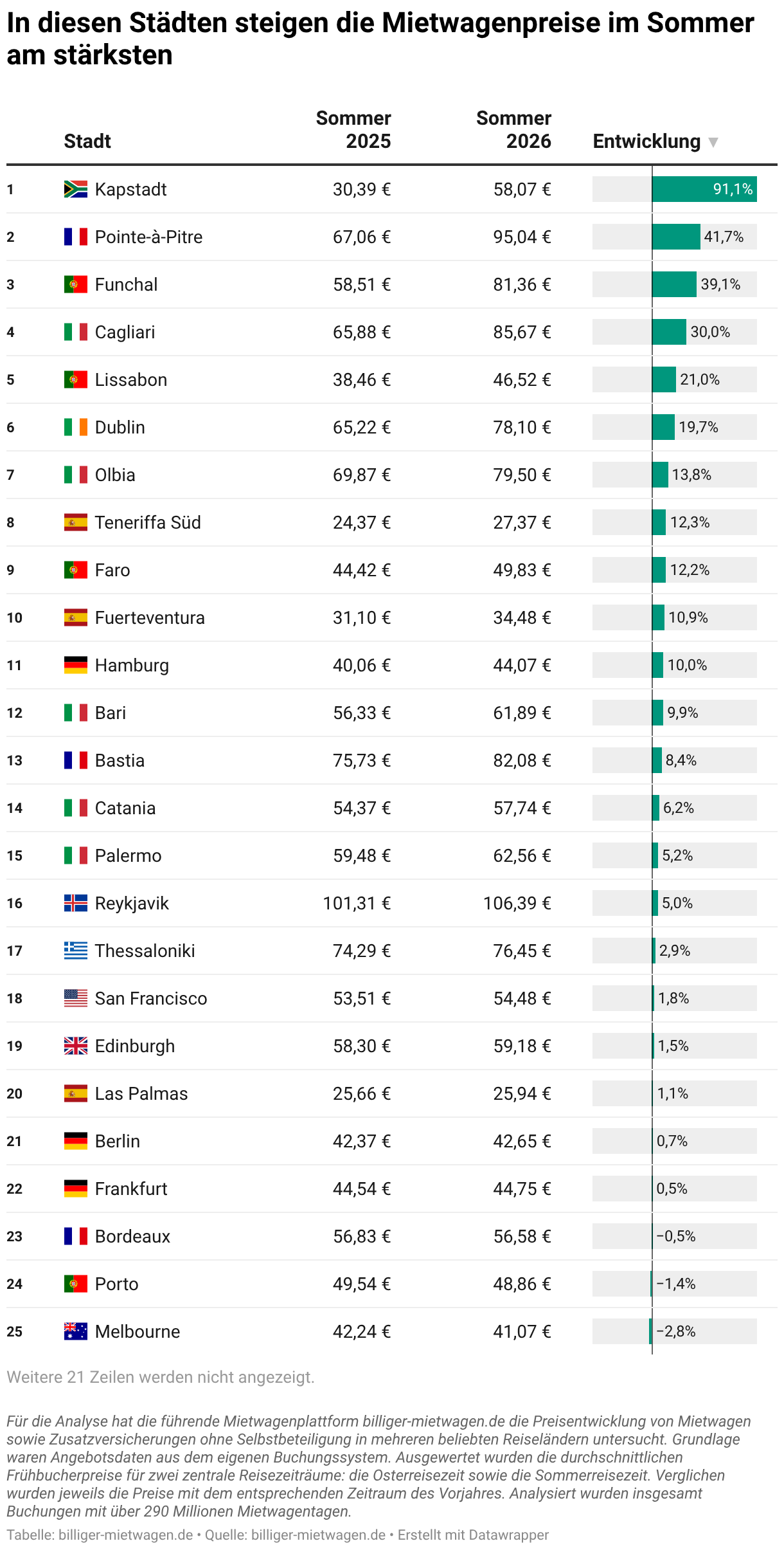 In diesen Städten steigen die Mietwagenpreise im Sommer am stärksten