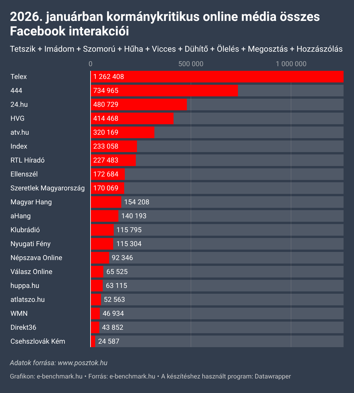 2026. januárban kormánykritikus online média összes Facebook interakciói