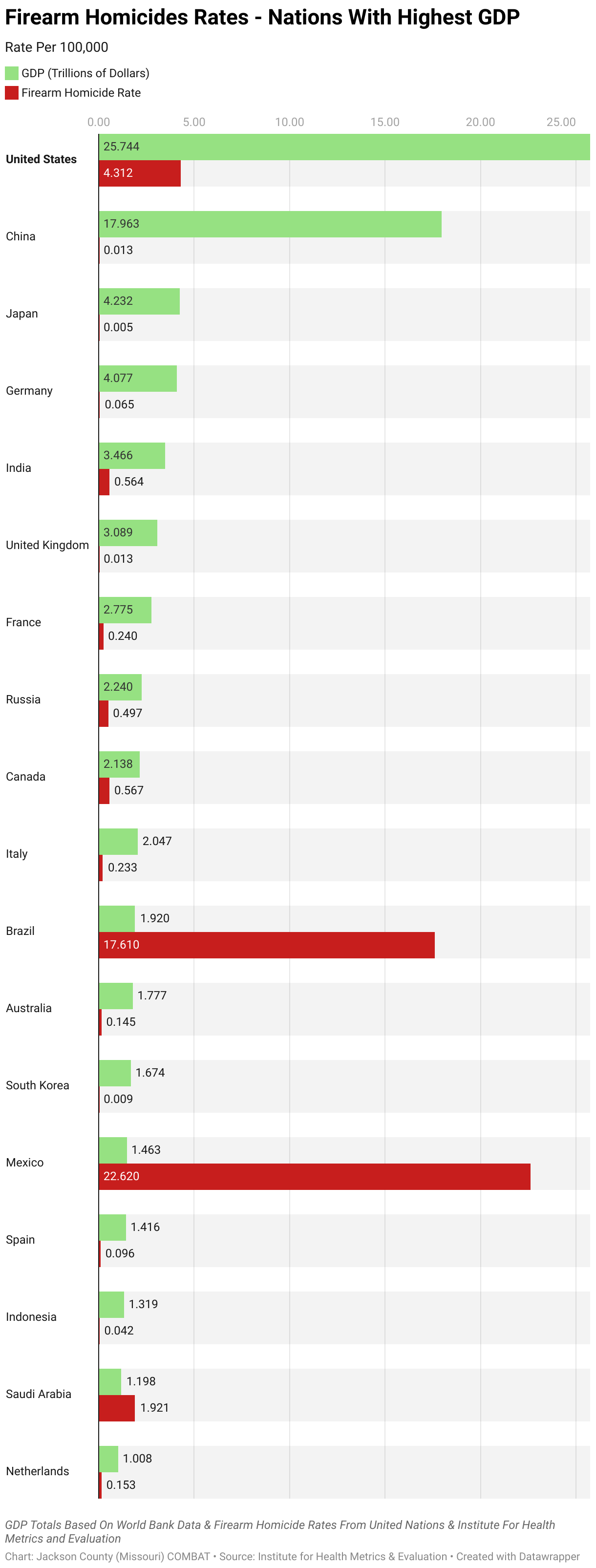 Firearm Homicides Rates - Nations With Highest GDP