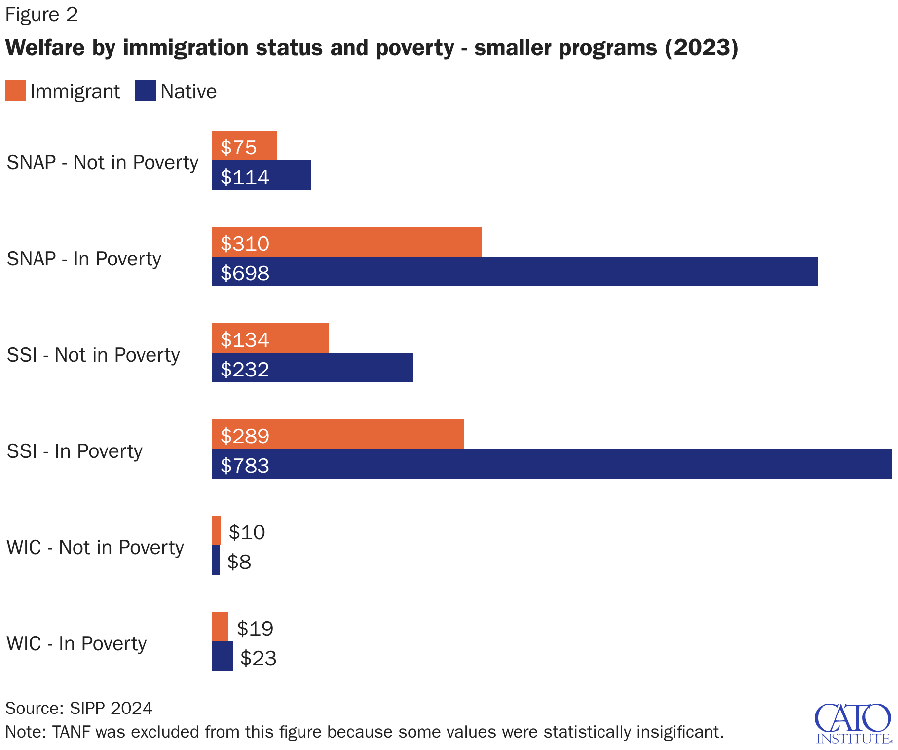 Welfare by immigration status and poverty - smaller programs (2023)