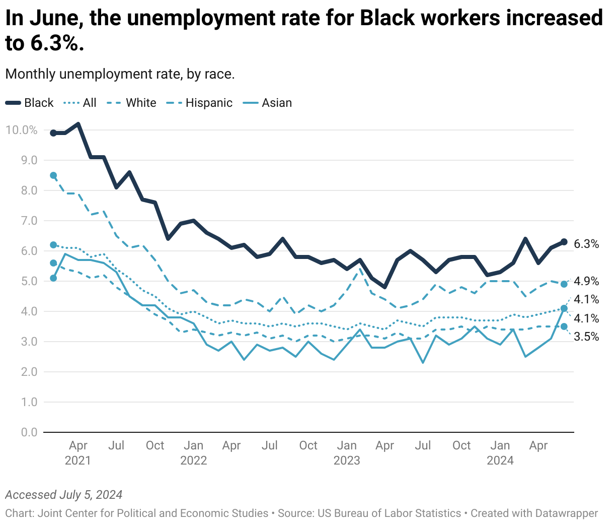 Monthly unemployment rate, by race.