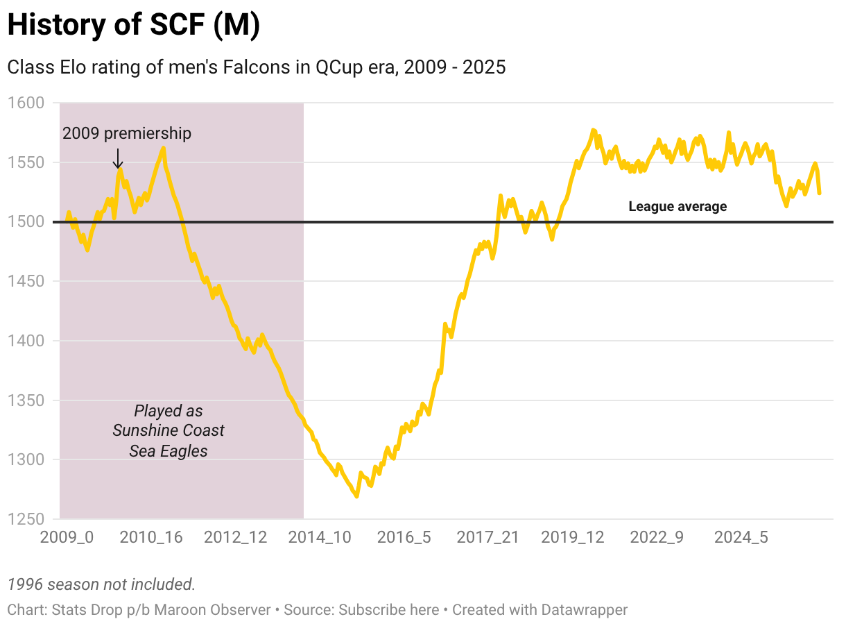 Class Elo rating of men's Falcons in QCup era, 2009 - 2025