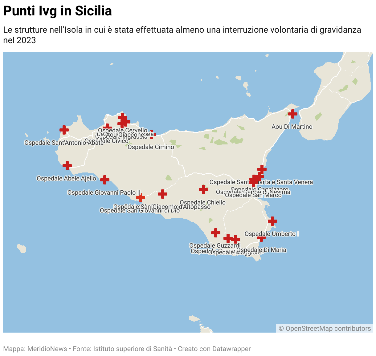 Le strutture nell'Isola in cui è stata effettuata almeno una interruzione volontaria di gravidanza nel 2023
