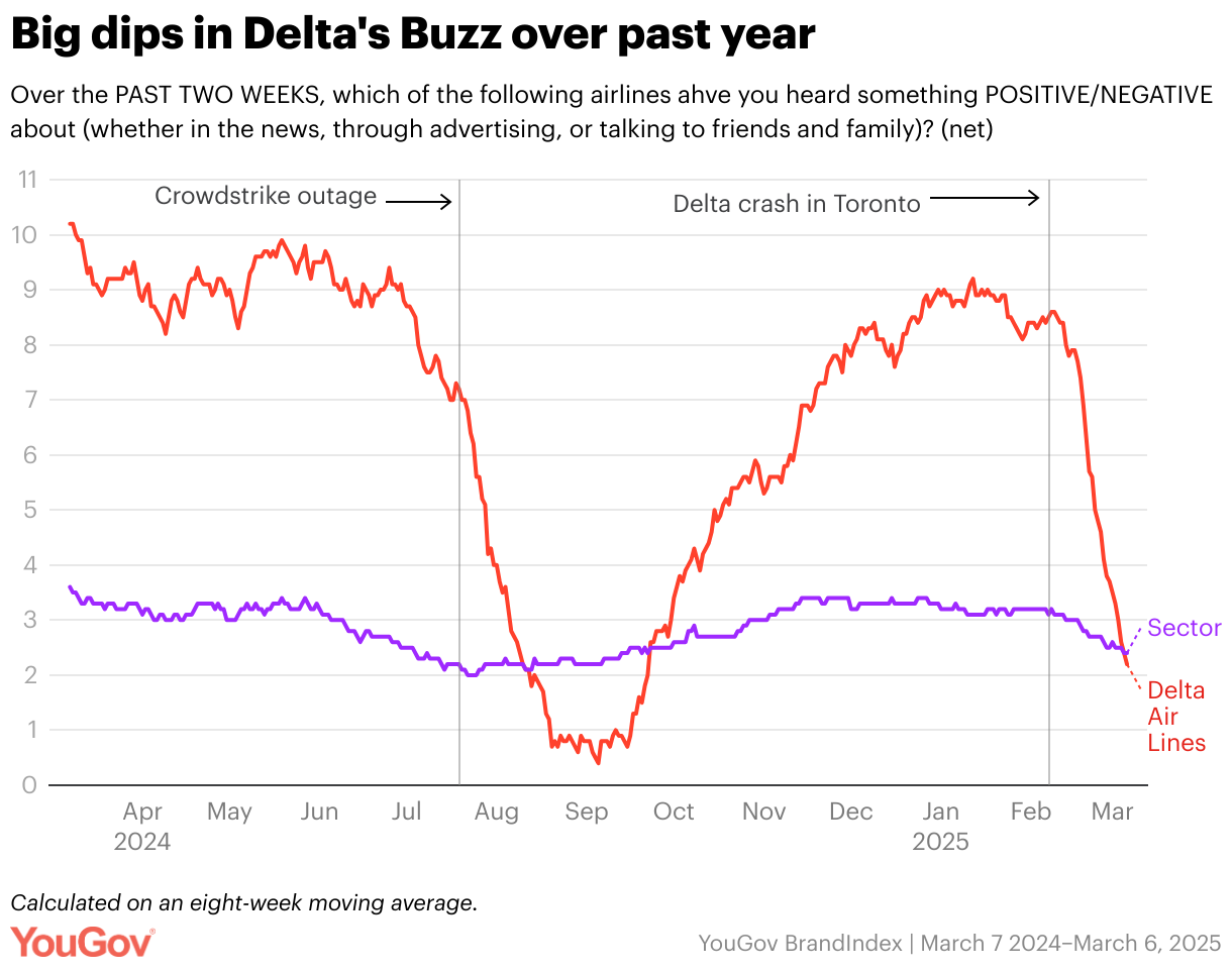 Over the PAST TWO WEEKS, which of the following airlines ahve you heard something POSITIVE/NEGATIVE about (whether in the news, through advertising, or talking to friends and family)? (net)