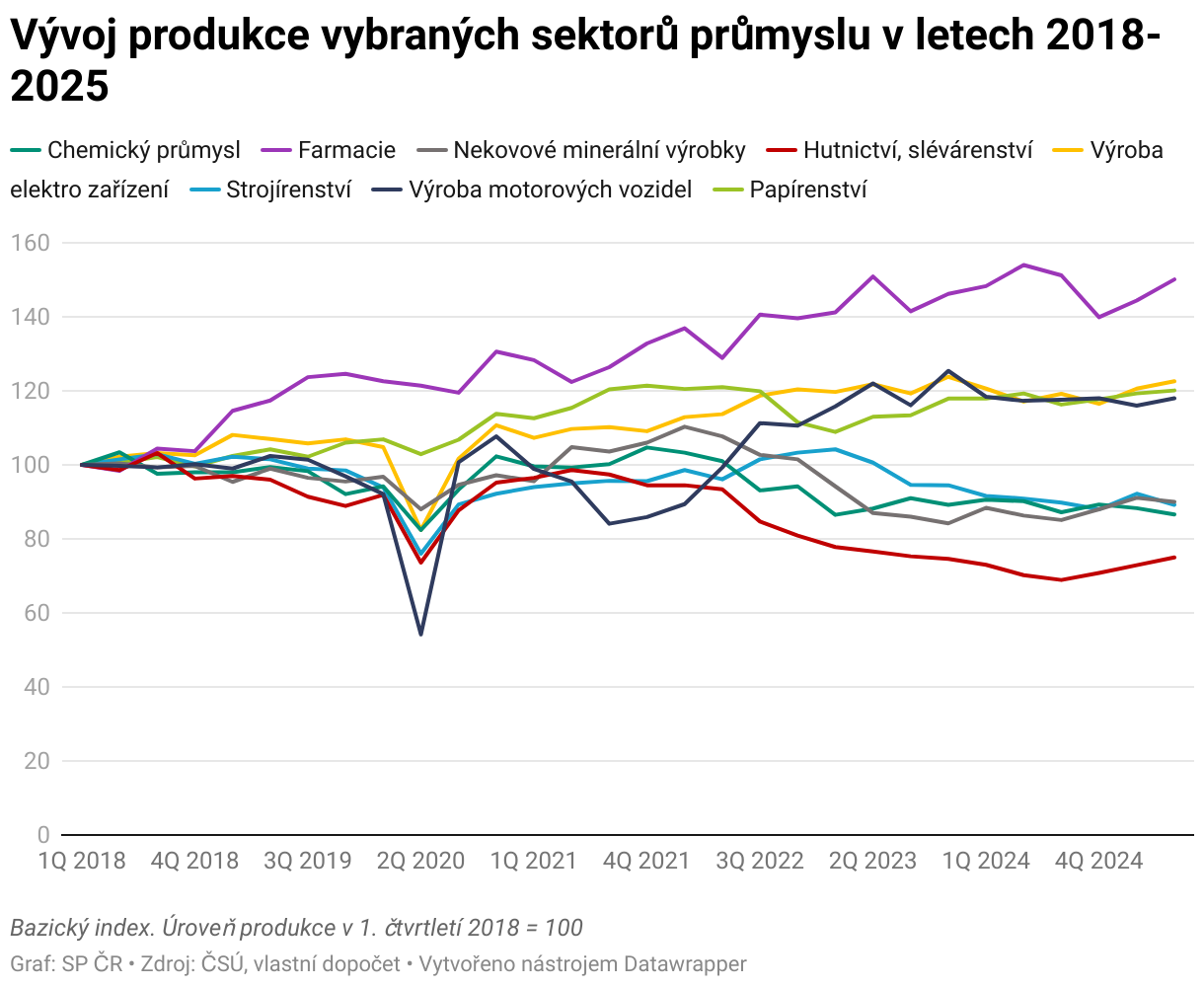 Vývoj produkce vybraných sektorů průmyslu v letech 2018-2025