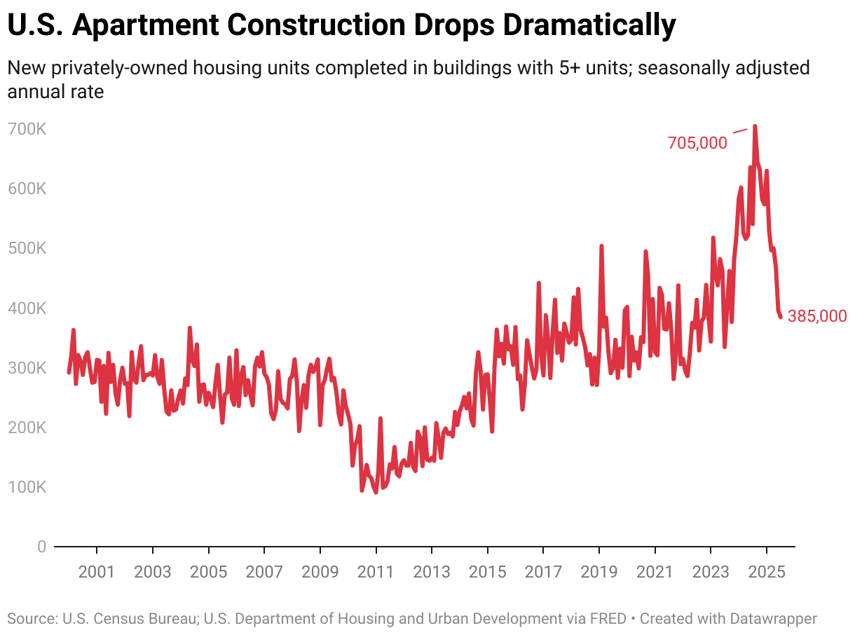 New privately-owned housing units completed in buildings with 5+ units; seasonally adjusted annual rate
