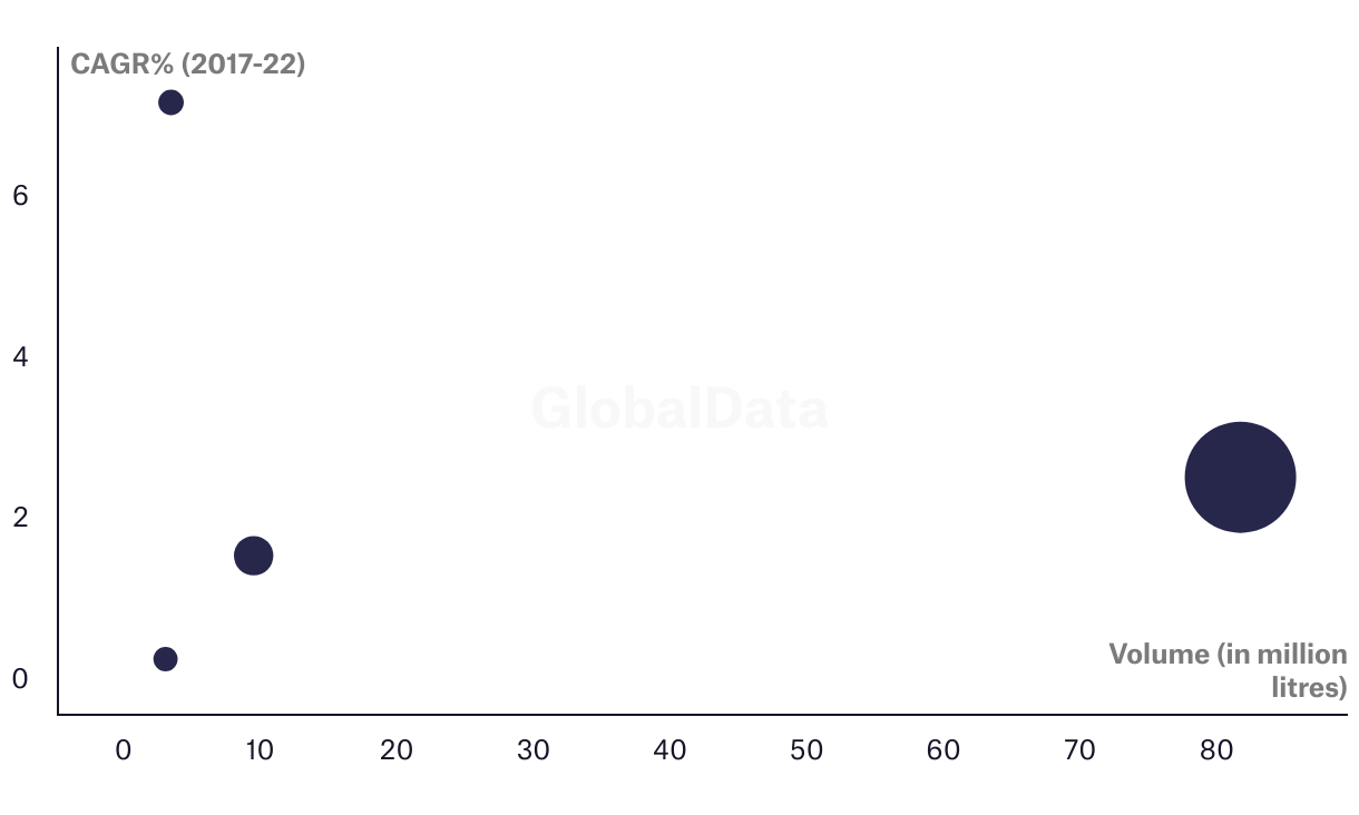Vodka volume and CAGR in the top Asian markets