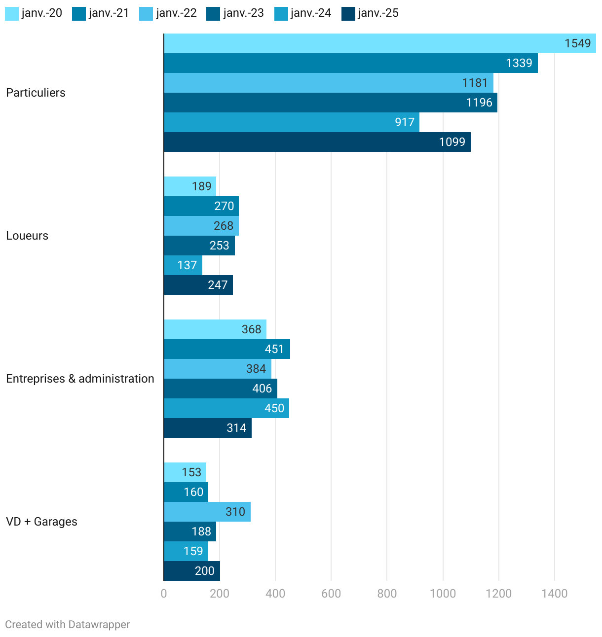 Volume des ventes de véhicules neufs par type d’acheteur à la Réunion au mois de janvier