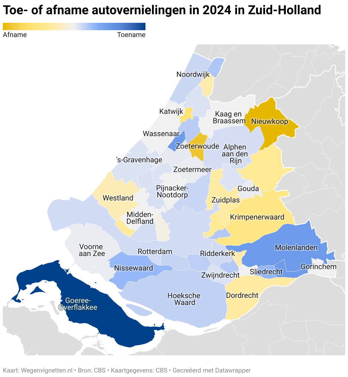 Toe- of afname autovernielingen in 2024 in Zuid-Holland