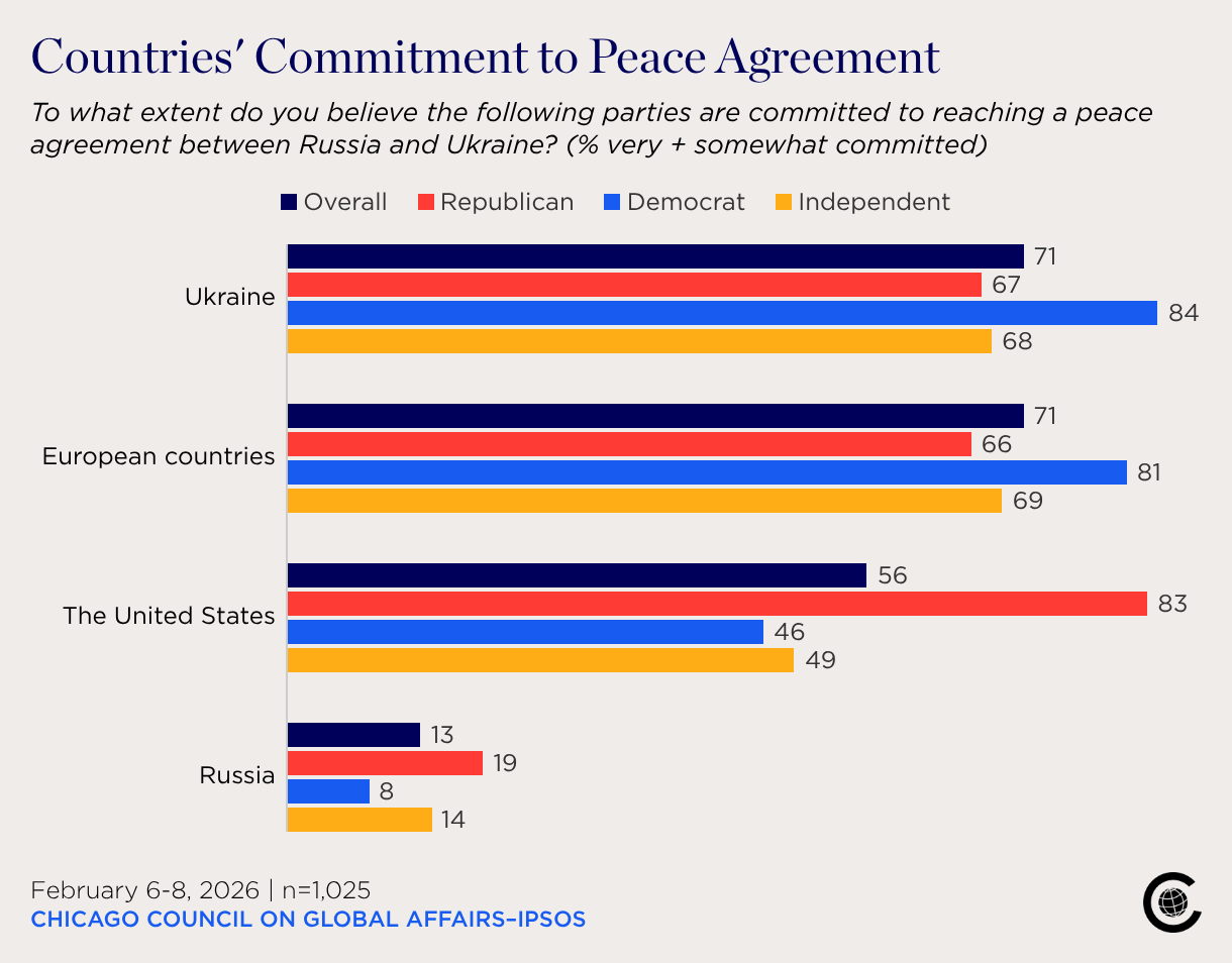 To what extent do you believe the following parties are committed to reaching a peace agreement between Russia and Ukraine? (% very + somewhat committed)