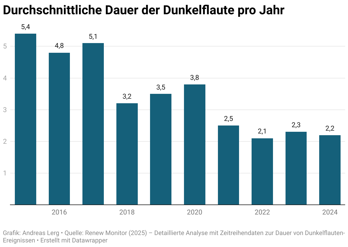 Durchschnittliche Dauer der Dunkelflaute pro Jahr