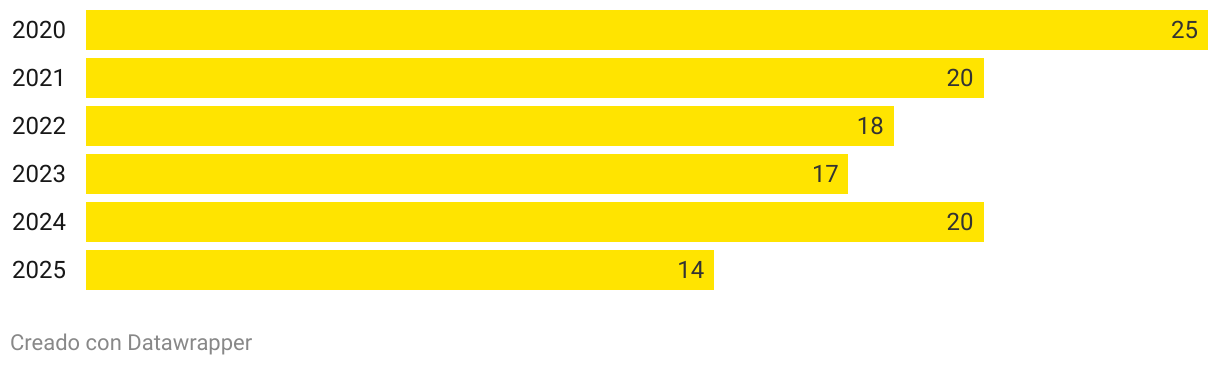 Variación de voluntarios de OPA desde 2020 a la actualidad