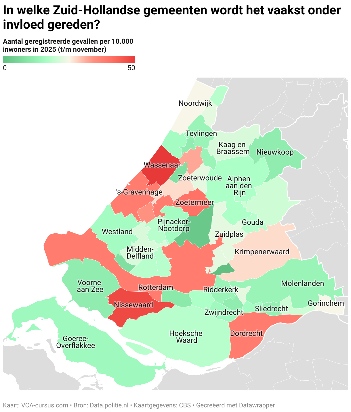 In welke Zuid-Hollandse gemeenten wordt het vaakst onder invloed gereden?