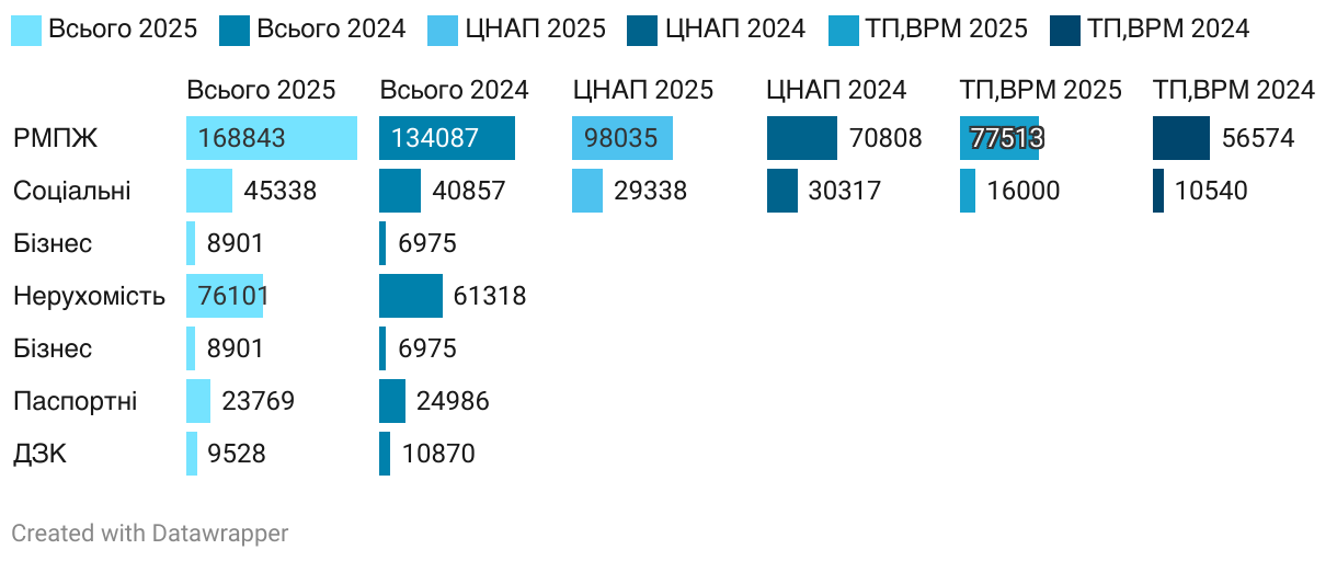 Порівняння кількості наданих послуг основних груп 1 кв. 2025 / 1 кв. 2024