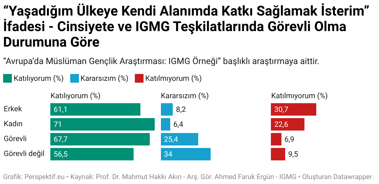 “Yaşadığım Ülkeye Kendi Alanımda Katkı Sağlamak İsterim” İfadesi - Cinsiyete ve IGMG Teşkilatlarında Görevli Olma Durumuna Göre