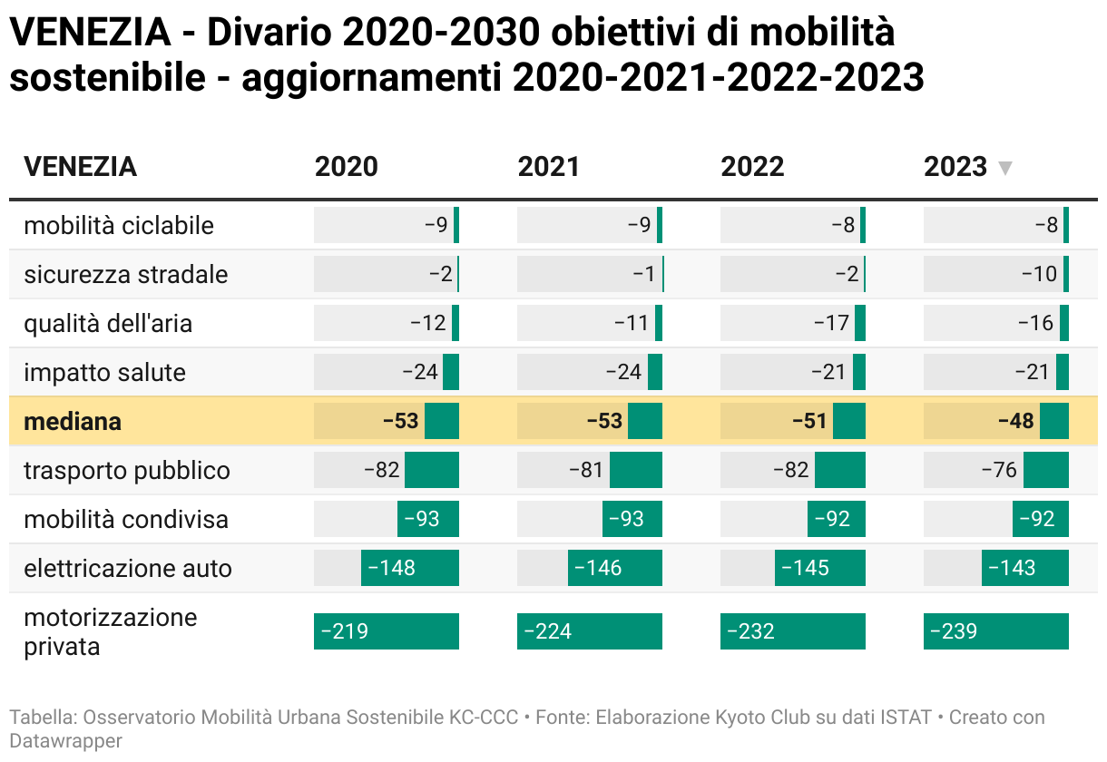 VENEZIA - Divario 2020-2030 obiettivi di mobilità sostenibile - aggiornamenti 2020-2021-2022-2023