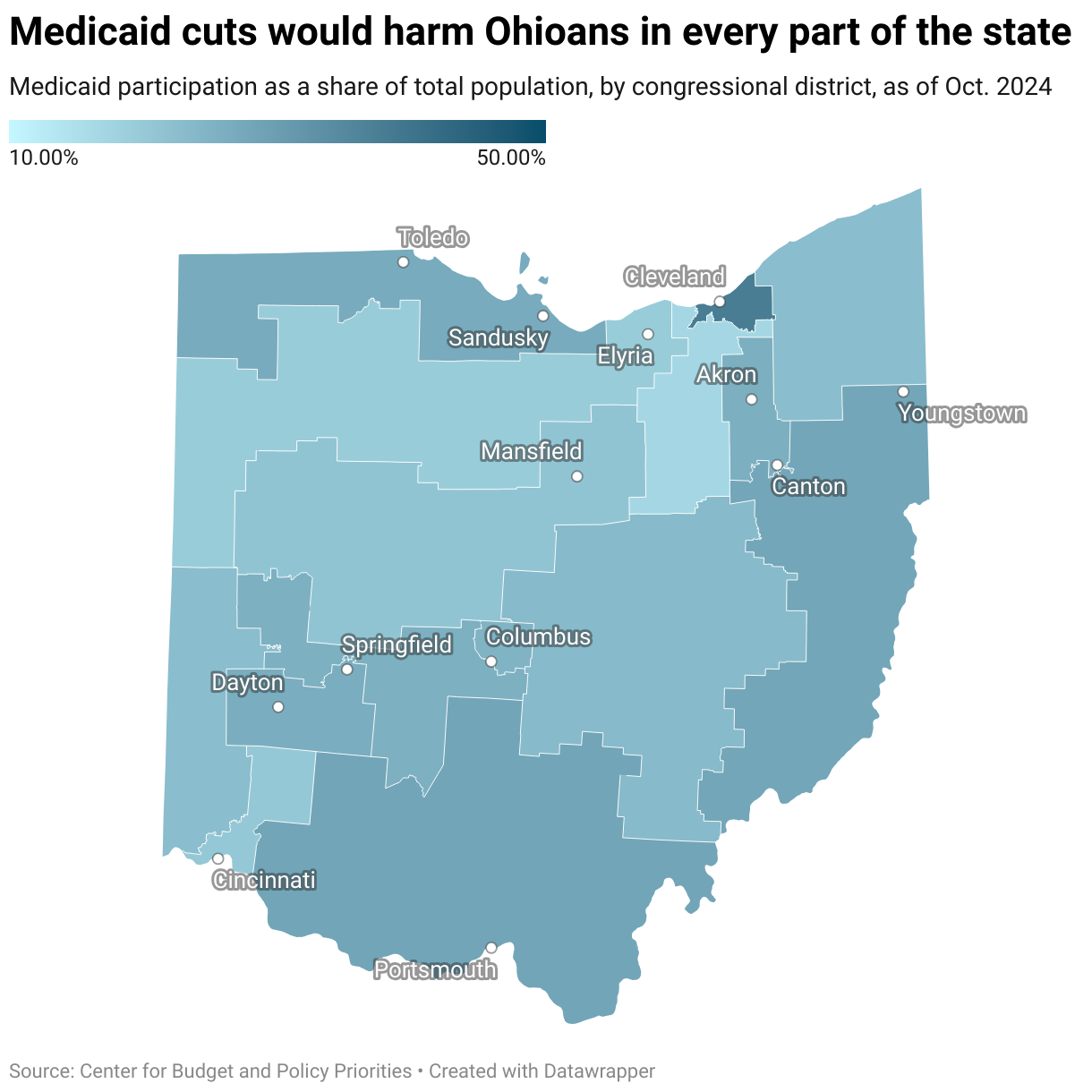 Medicaid participation as a share of total population, by congressional district, as of Oct. 2024
