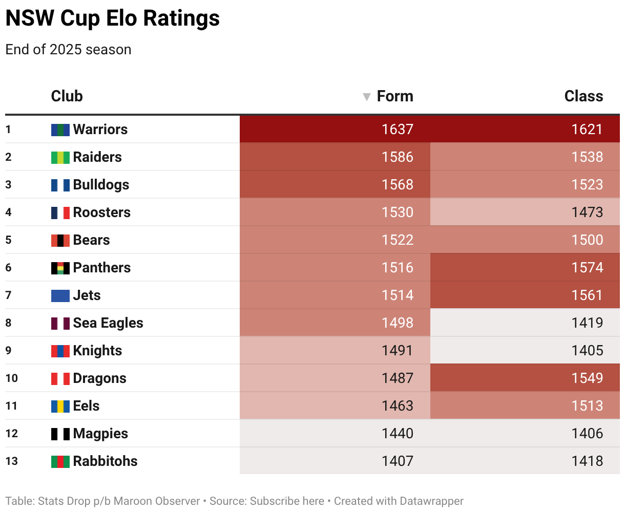 NSW Cup Elo Ratings