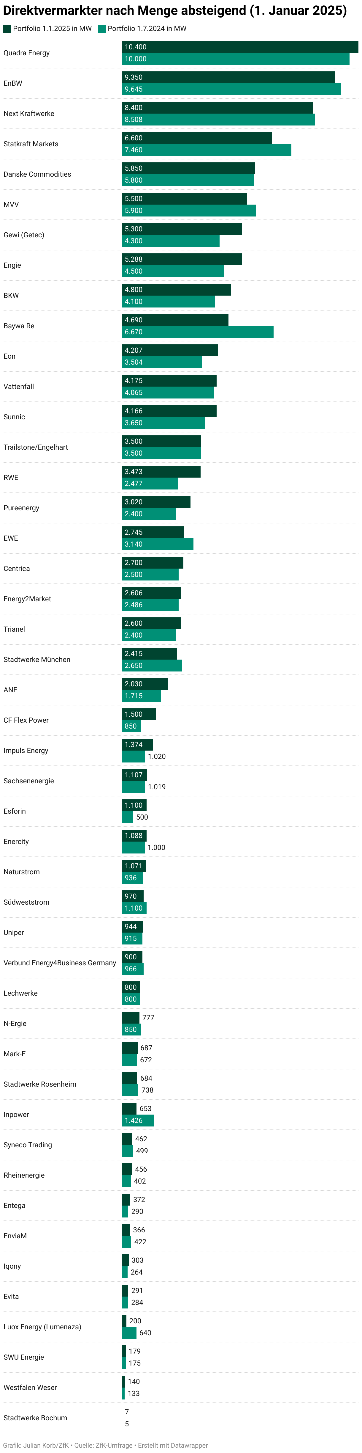 Direktvermarkter nach Menge absteigend (1. Januar 2025)