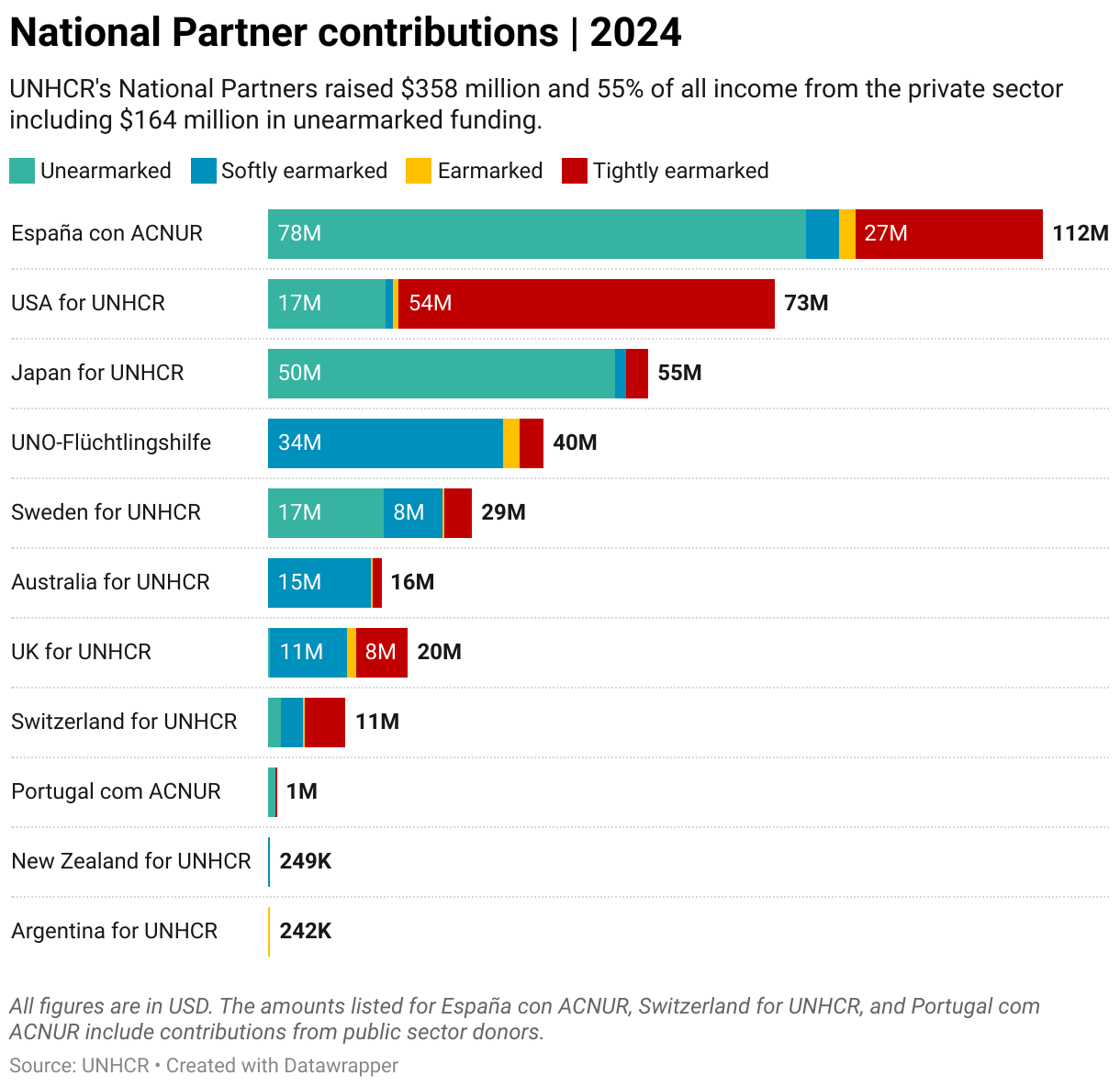 UNHCR's National Partners raised $358 million and 55% of all income from the private sector including $164 million in unearmarked funding.