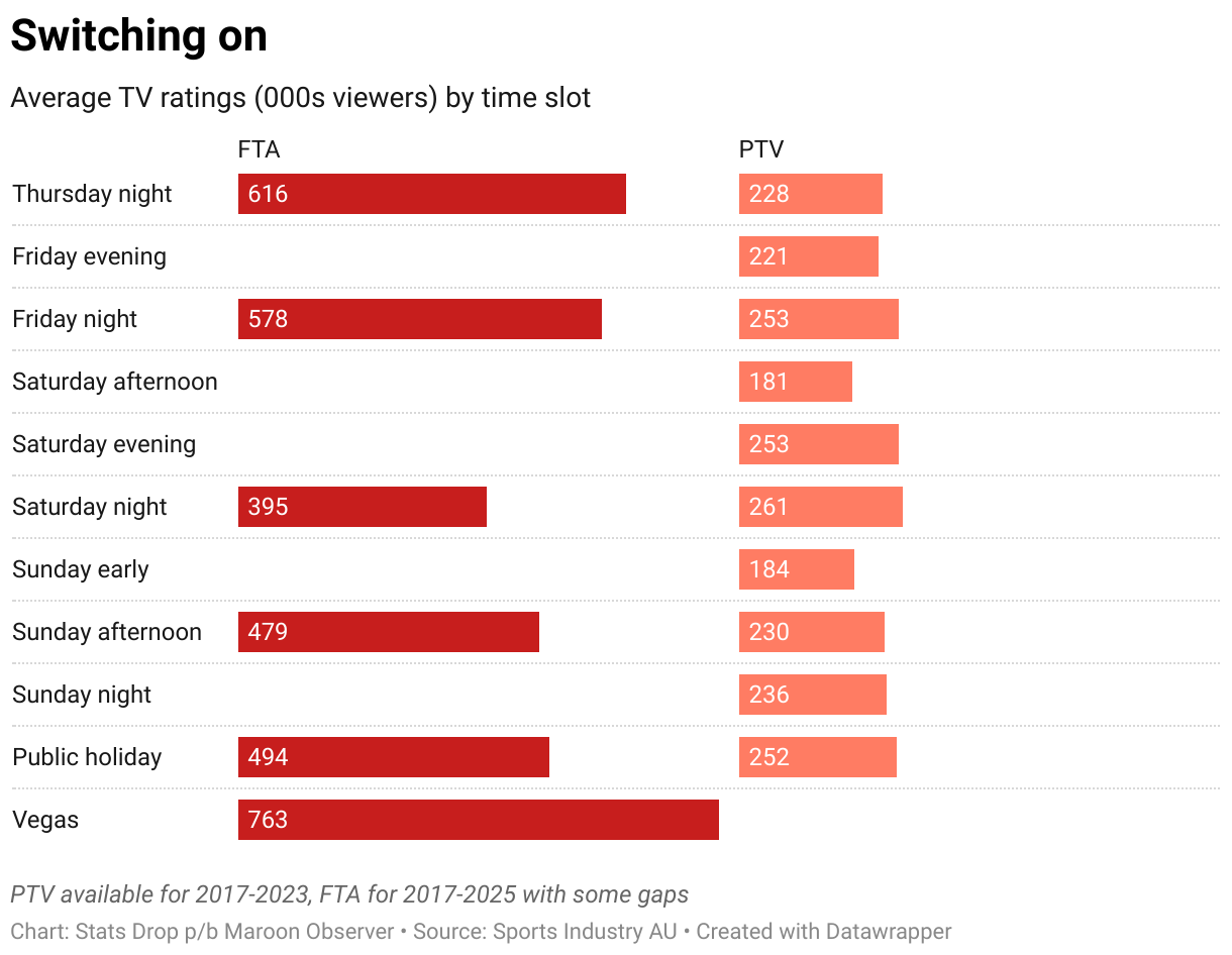 Average TV ratings (000s viewers) by time slot