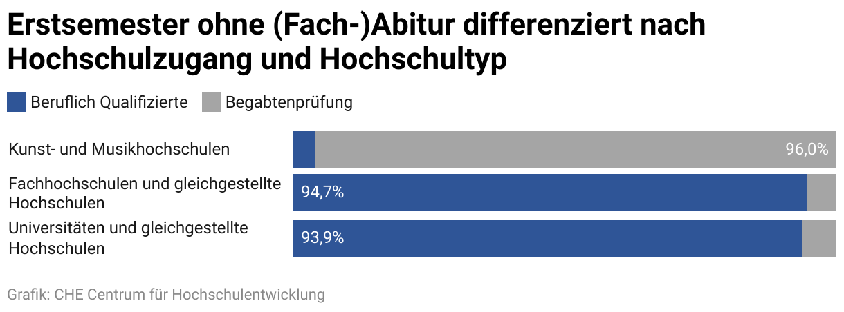 Erstsemester ohne (Fach-)Abitur differenziert nach Hochschulzugang und Hochschultyp